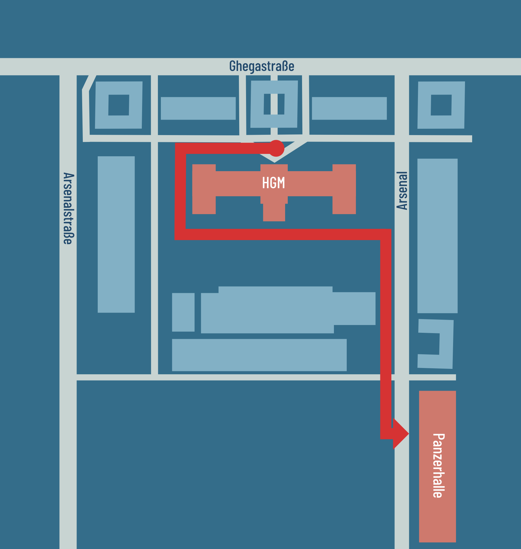 Leitsystem für Fußgänger:innen und Radfahrer:innen: Zugang zur Panzerhalle: