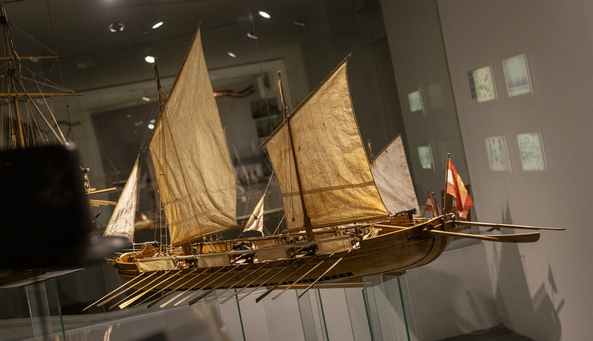 In diesem Abschnitt der Marinegeschichte finden sich Galionsfiguren und Schiffsmodelle zur Ansicht, ebenso die einzigen erhalten gebliebenen Ballon-Abwurfbomben (System Uchatius), die 1849 bei der Belagerung Venedigs zum Einsatz gekommen waren. Zu sehen sind auch Erinnerungsstücke an die meisten Flottenkommandanten und Darstellungen der österreichischen Flottenpräsenz.