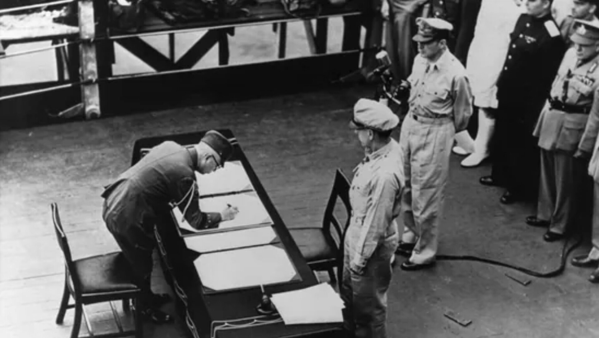 Am 2. September 1945 unterzeichneten der US-General Douglas MacArthur und der japanische Außenminister Shigemitsu Mamoru an Bord der „USS Missouri“ die bedingungslose Kapitulation des japanischen Kaiserreiches. Damit war der Zweite Weltkrieg auch im Pazifik beendet.