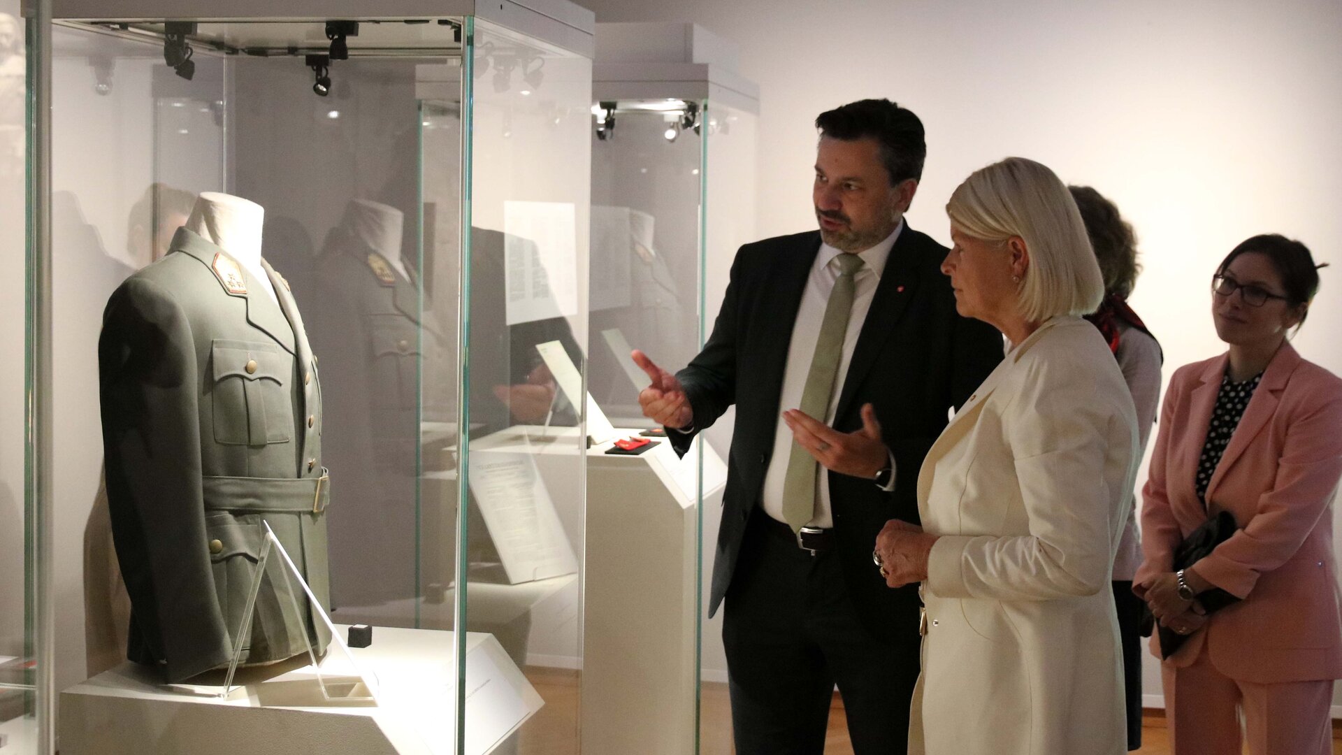 Der 7. September 1955 gilt als offizieller Gründungstag des Österreichischen Bundesheeres. Zum Anlass des 70-jährigen Jubiläums eröffnete Bundesministerin Klaudia Tanner am 9. September gemeinsam mit HGM-Direktor Georg Hoffmann die Präsentation „70 Jahre Österreichisches Bundesheer" und konnte als erste Besucherin Willkommen geheißen werden. Die in sieben Vitrinen präsentierten Objekte können bis 18. Jänner 2026 im Sonderausstellungsraum besichtigt werden. Die Ausstellung zeigt, wie eng die Geschichte des Heeres mit der Geschichte der Zweiten Republik verbunden ist. Sie widmet sich der gesamten Bestehungszeit des Österreichischen Bundesheeres – von seiner Gründung über Einsätze im In- und Ausland, die Herausforderungen der Corona-Pandemie bis in die Gegenwart.