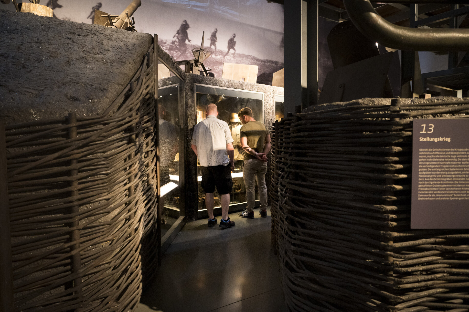 Georg Rütgen arbeitet seit über zwanzig Jahren im Museum. Gemeinsam mit seinem Team entwickelt er Programme für Besucher:innen aller Altersgruppen, besonders für Schulklassen. „Kriege gehören ins Museum – und sonst nirgendwo hin“, betont er. Beliebt ist das Angebot zum Ersten Weltkrieg: Schülerinnen und Schüler erleben dort Ursachen, Folgen und menschliches Leid ganz direkt – etwa beim Blick in einen originalen Schützengraben.