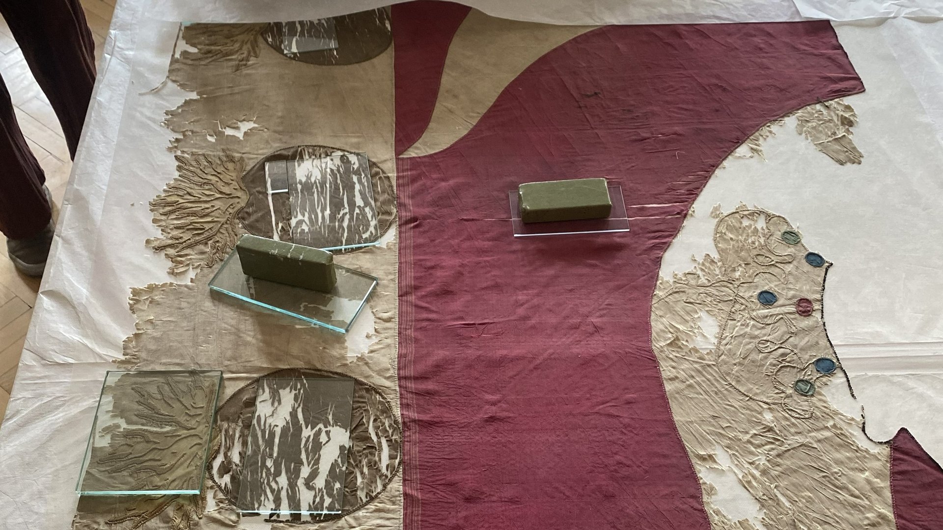 Für die fachgerechte Lagerung und Konservierung wurden eigens gepolsterte Röhren vorbereitet, auf die die Seidenstoffe aufgerollt und anschließend geschützt ins Depot gebracht wurden. Dort werden sie künftig unter kontrollierten Bedingungen aufbewahrt, um weitere Schäden zu verhindern.