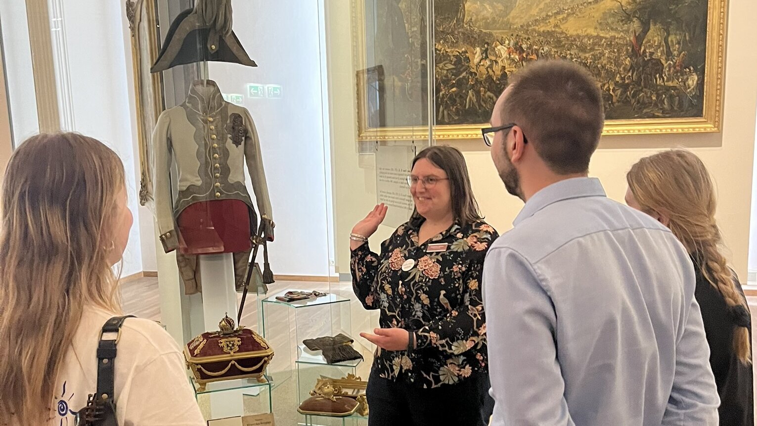 Wir haben auch unsere Museumsbotschafter:innen selbst zum neuen Konzept befragt: „Wir freuen uns immer, wenn wir angesprochen werden – aber oft gehen wir auch selbst auf Menschen zu, die vielleicht ein wenig verloren wirken“, denn gerade dann entstehen oft besonders interessante Gespräche. Jede Person bringt ihre eigene Perspektive auf Geschichte mit – geprägt von Herkunft, Alter oder Beruf. So zeigten sich etwa internationale Studierende erstaunt darüber, dass das heutige Binnenland Österreich einst über eine eigene (Kriegs-)Marine verfügte. Ein schwedischer Besucher wiederum konnte überraschende Details zur Geschichte Savoyens beisteuern.
