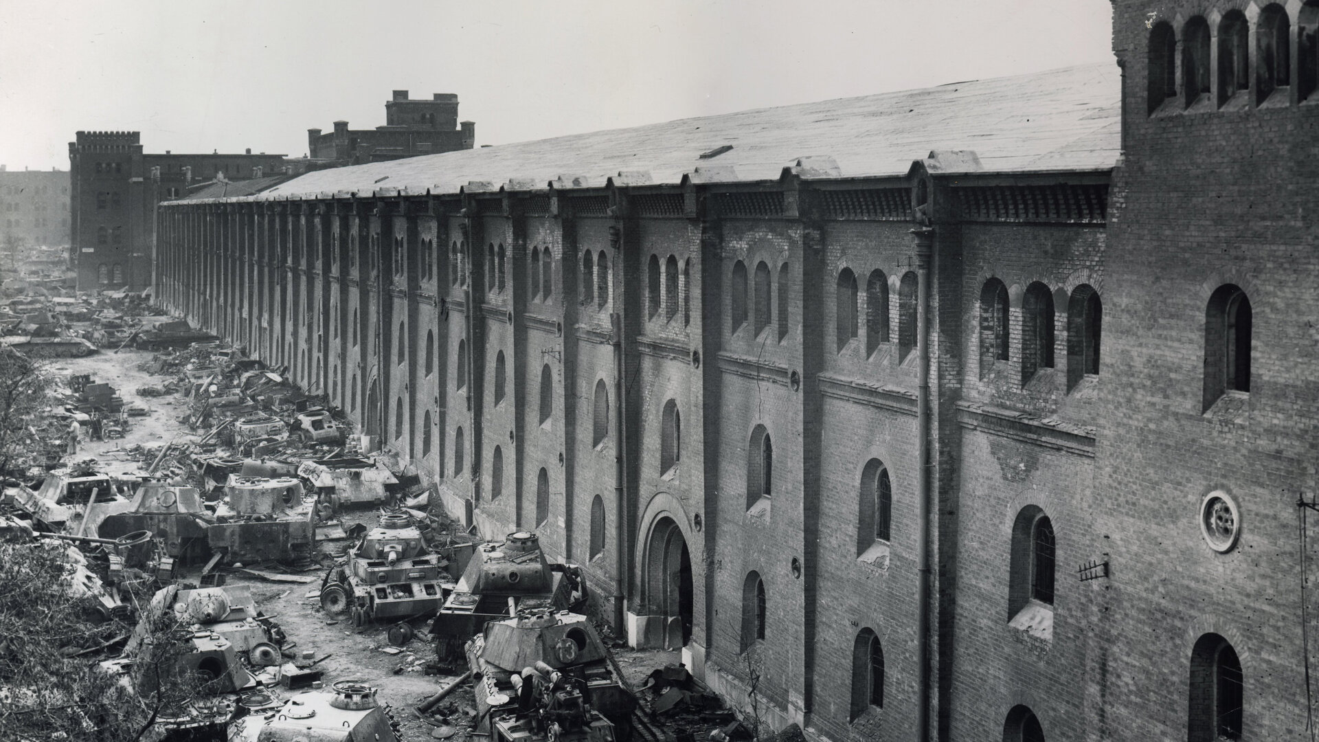 Das Arsenal war im Zweiten Weltkrieg nicht nur Standort des Heeresmuseums, sondern beherbergte auch eine Reihe militärischer Rüstungsbetriebe. So war dort unter anderem auch eine Panzerwerkstätte untergebracht. Auf Bild 1 sind ausgeschlachtete Panzer verschiedenster Typen von deutschen Panzerdivisionen zu erkennen, die wohl als Ersatzteillager dienten. Die Bedeutung des Arsenals als Rüstungsbetriebsstätte führte in weiterer Konsequenz dazu, dass alliierte Bomberverbände das Arsenal angriffen und große Zerstörungen anrichteten. Das Objekt 1 wurde, wie auf Bild 2 deutlich sichtbar, durch Bombentreffer, aber auch durch die Kämpfe während der Schlacht um Wien im April 1945 zerstört.